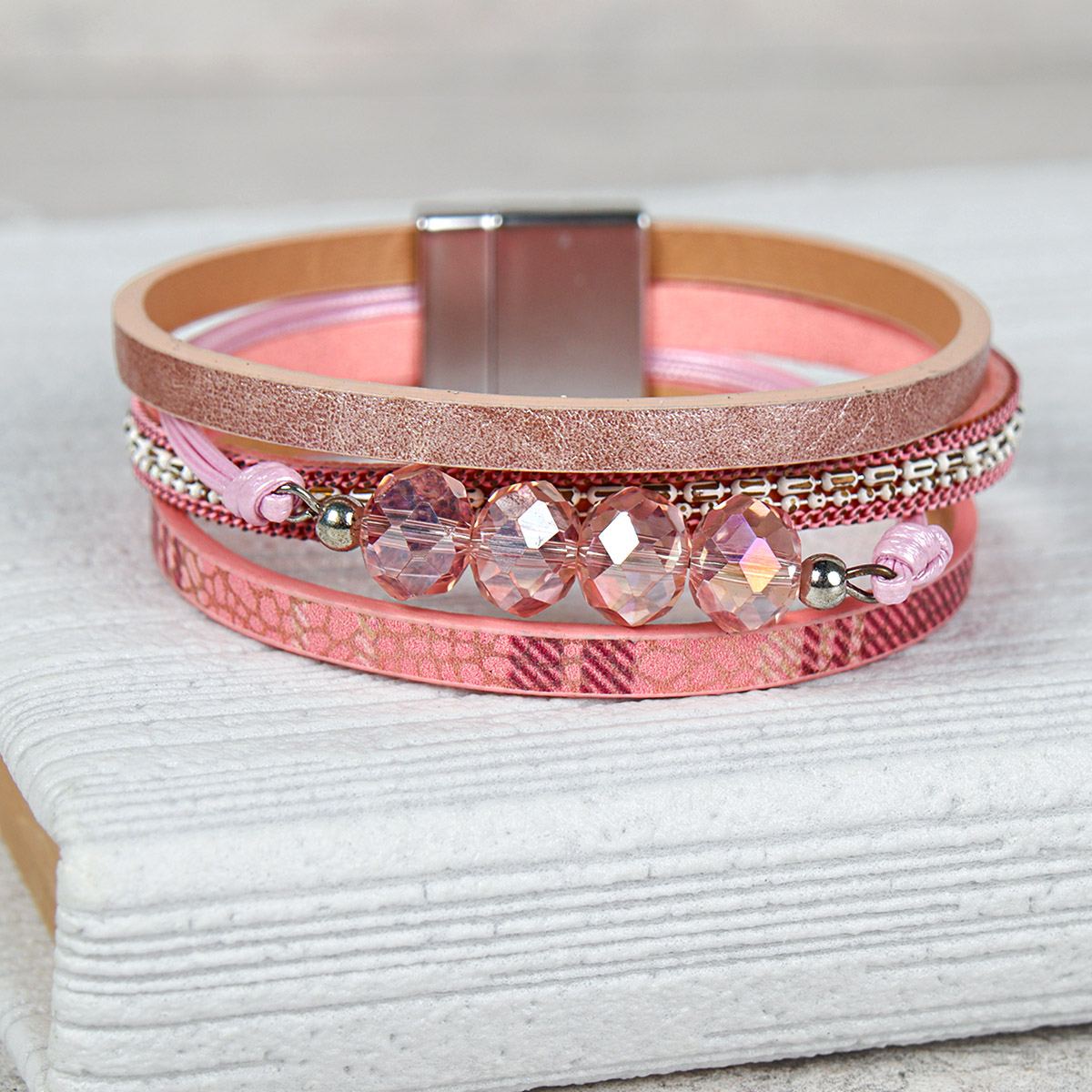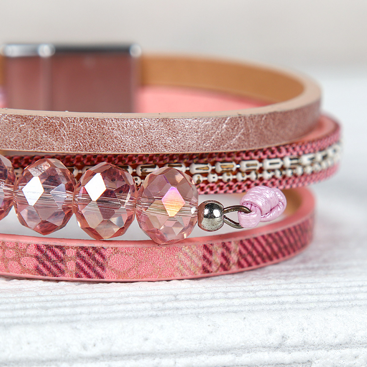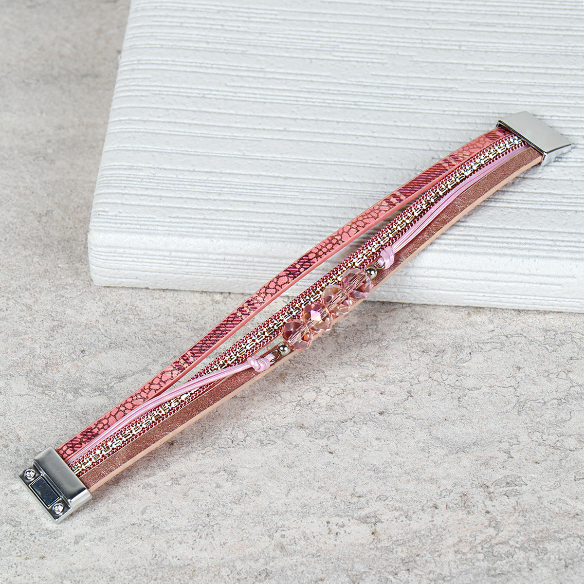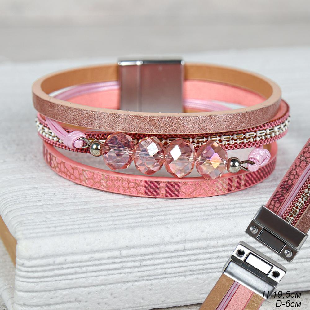 Браслет многослойный 19,5 см / GTBT-2 /уп 12/ магнитная застежка/ розовый