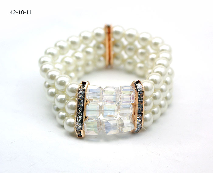 Браслет из иск жемчуга с элементами хрусталя / 42-10-11 /уп 2/12/