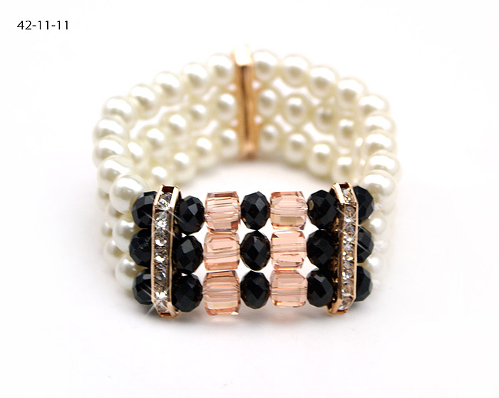 Браслет из иск жемчуга с элементами хрусталя / 42-11-11 /уп 2/12/