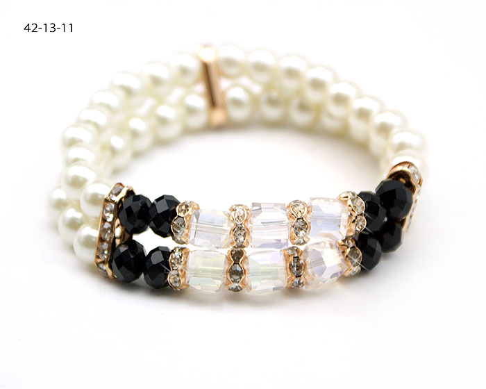 Браслет из иск жемчуга с элементами хрусталя / 42-13-11 /уп 2/12/