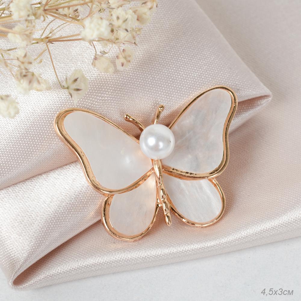 Брошь Бабочка / B359-13 /уп 24/с жемчугом