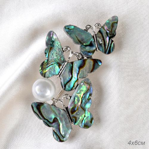 Брошь Бабочки 4 см / GM308 /уп 12/ с жемчугом