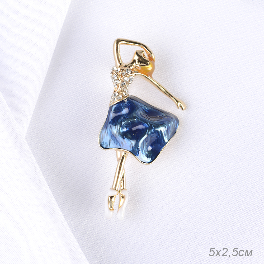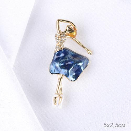 Брошь Балерина 5 см синее платье / GM273-25 /уп 12/