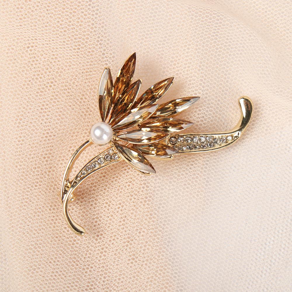 Брошь Букет 9 см / 38B-10-16 /уп 420/ с жемчугом (Золото)