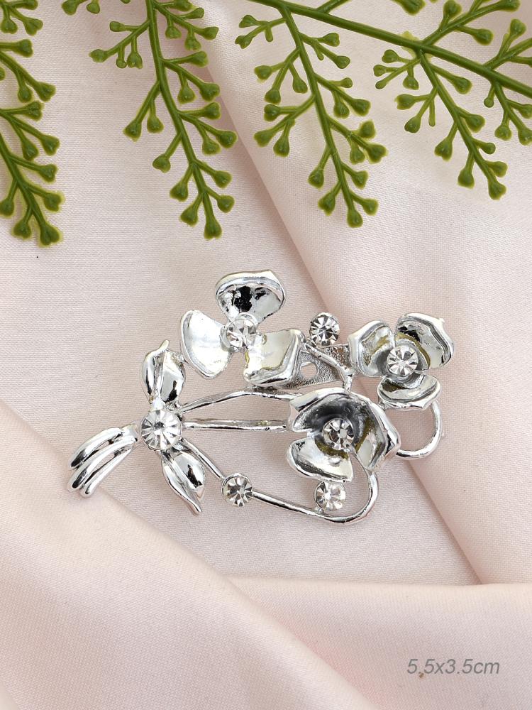 Брошь Букет цветов 5,5 см / NA-20-153 /уп 12/ серебро