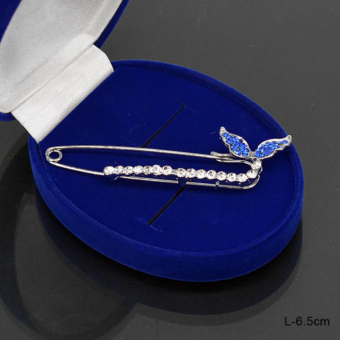 Брошь булавка Бабочка 6,5 см / 59-33/2 /уп 12/ синяя