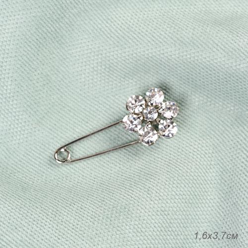 Брошь булавка Цветок 3,7 см / 59-29 /уп 3/12/ серебро
