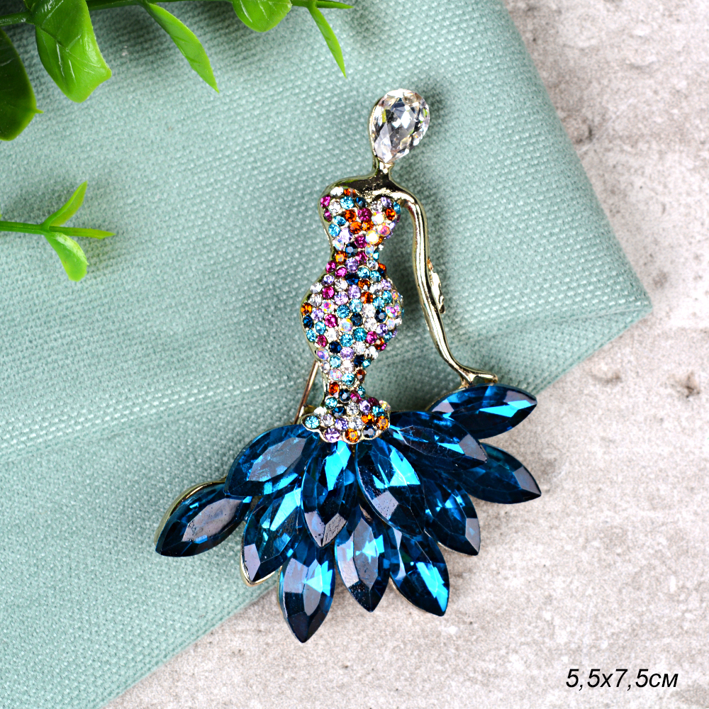 Брошь Дама 7,5 см / A-1020 /уп 12/ серебро