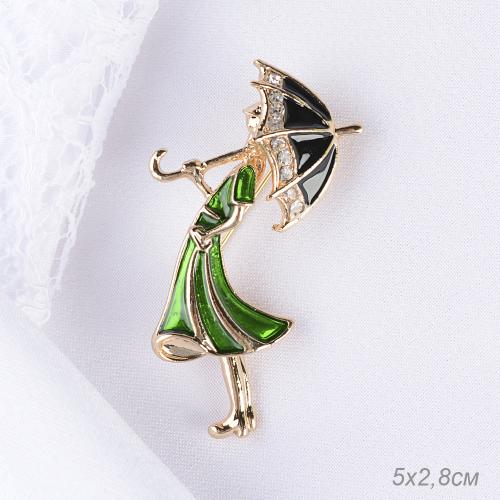 Брошь Девушка под зонтом 5 см / GM273-28 /уп 12/ золото