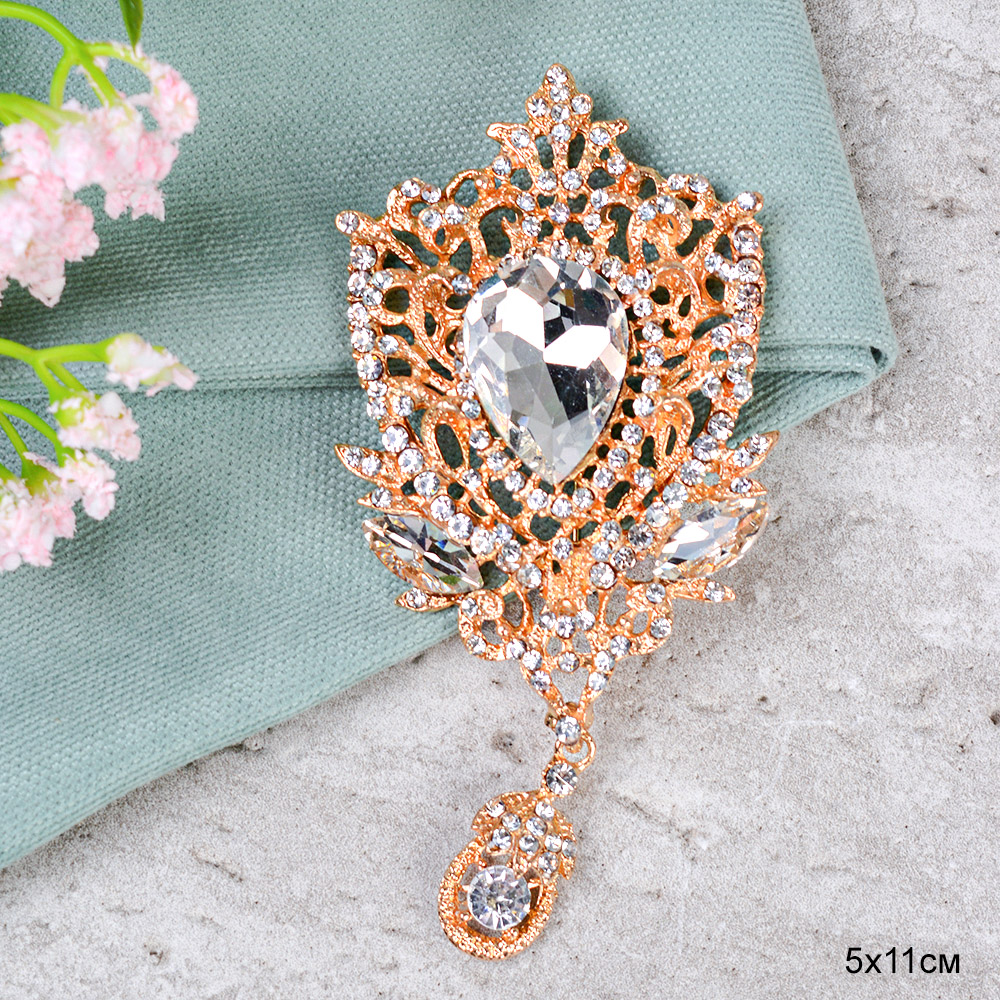 Брошь Фантазийная 11 см / GM336 /уп 12/ свадебная/ золото