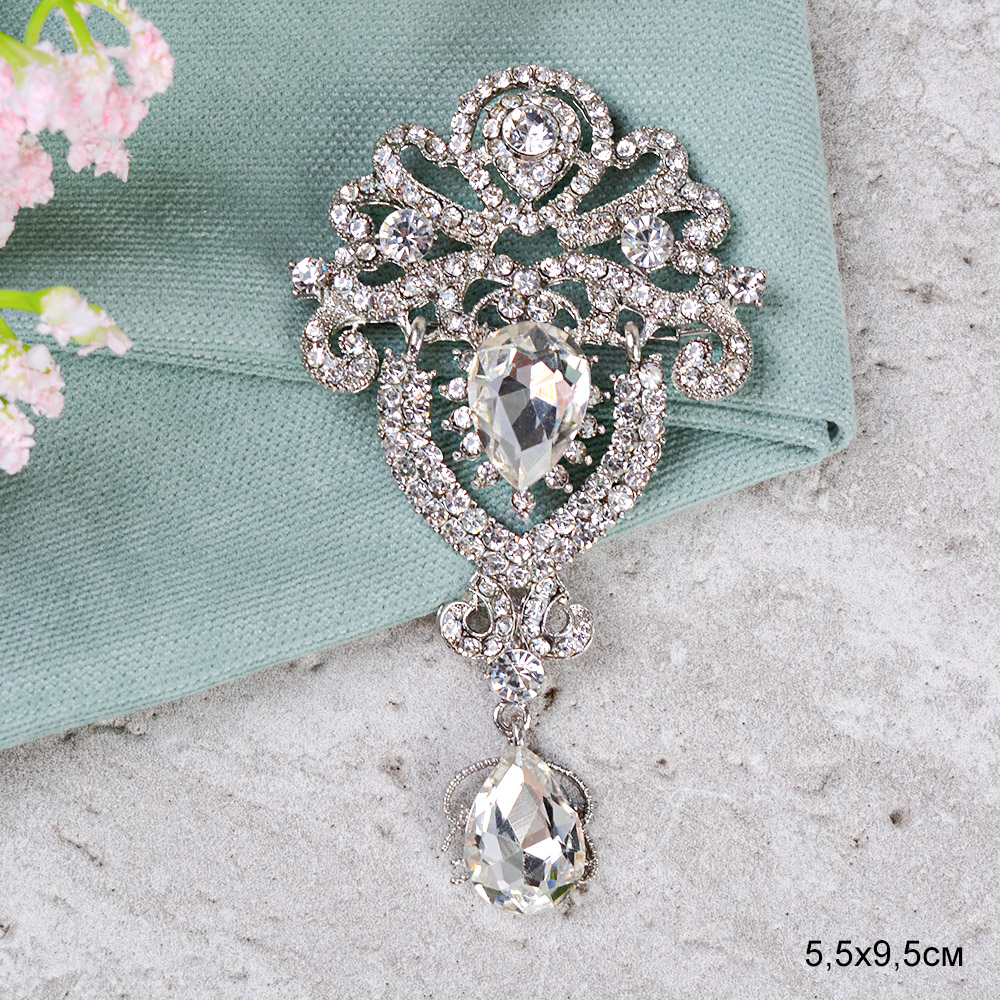 Брошь Фантазийная 9,5 см / GM334 /уп 12/ свадебная/ серебро