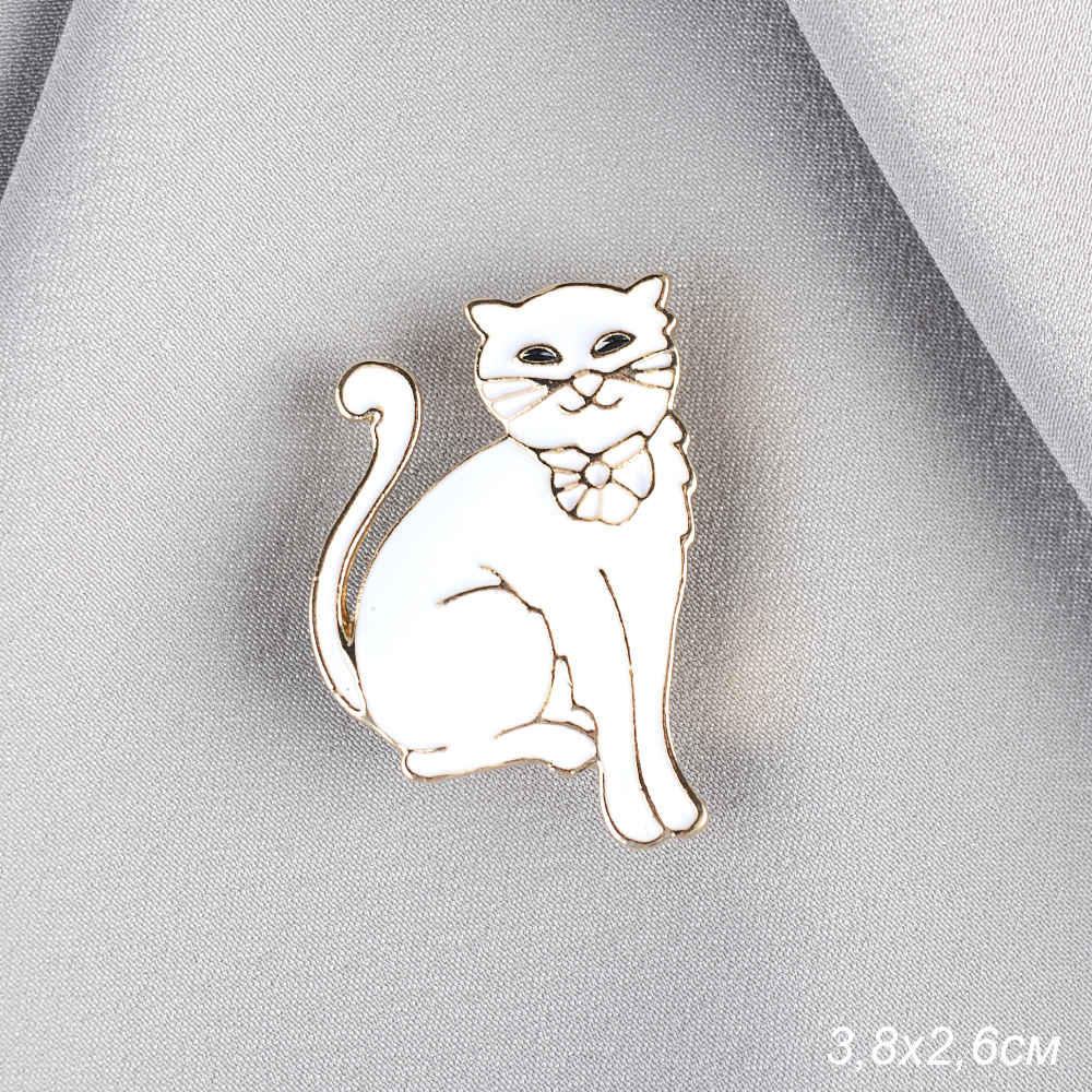 Брошь Кошка 3,8 см / GM273-37 /уп 12/ белая