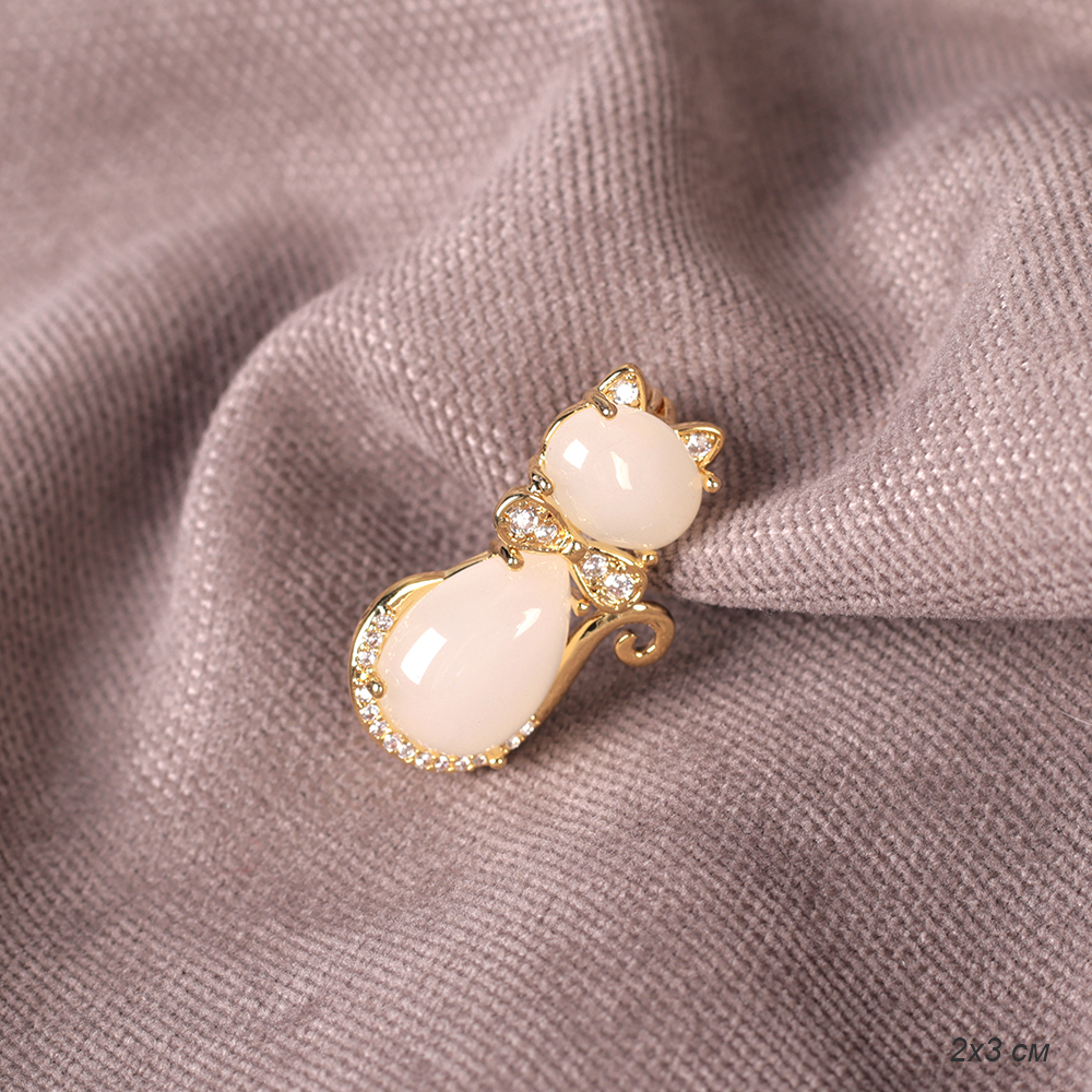 Брошь Кошка 3 см / GM295 /уп 12/ с перламутровыми камнями