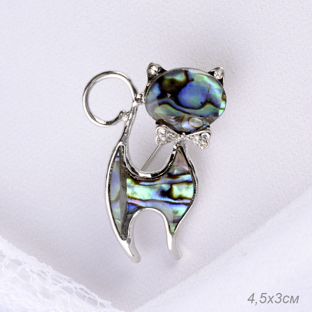 Брошь Кошка 4,5 см / GM273-23 /уп 12/ серебро