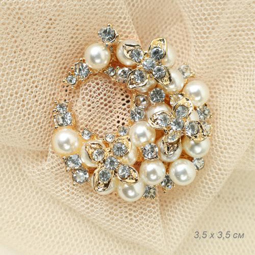 Брошь Круг 3,5 см / LT14-8 /уп 48/ с жемчугом