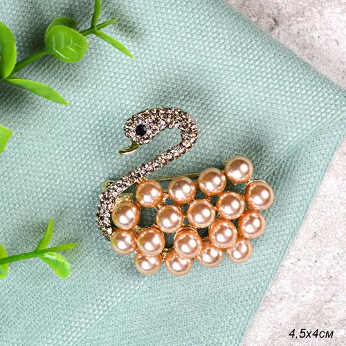Брошь Лебедь жемчуг / A-1018 /уп 12/