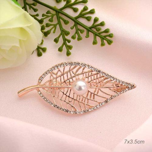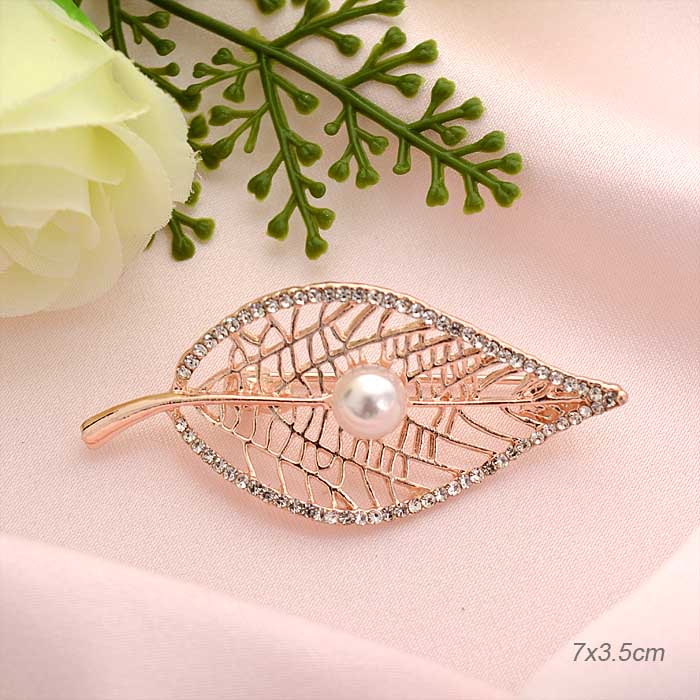 Брошь Лист со стразами 7 см / 1230-18 /уп 12/ с жемчугом