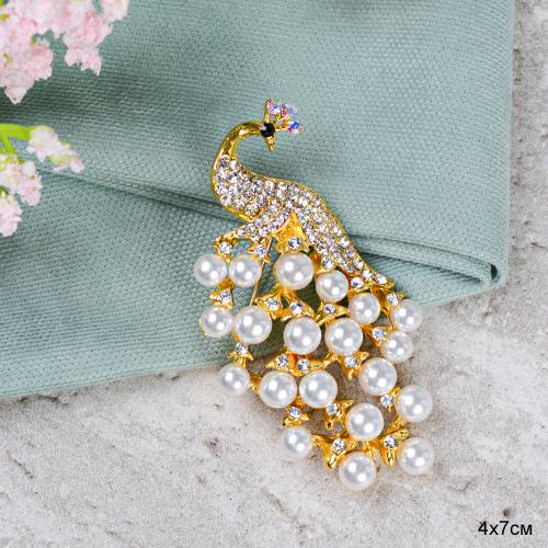 Брошь Павлин с жемчугом / GM346 /уп 24/