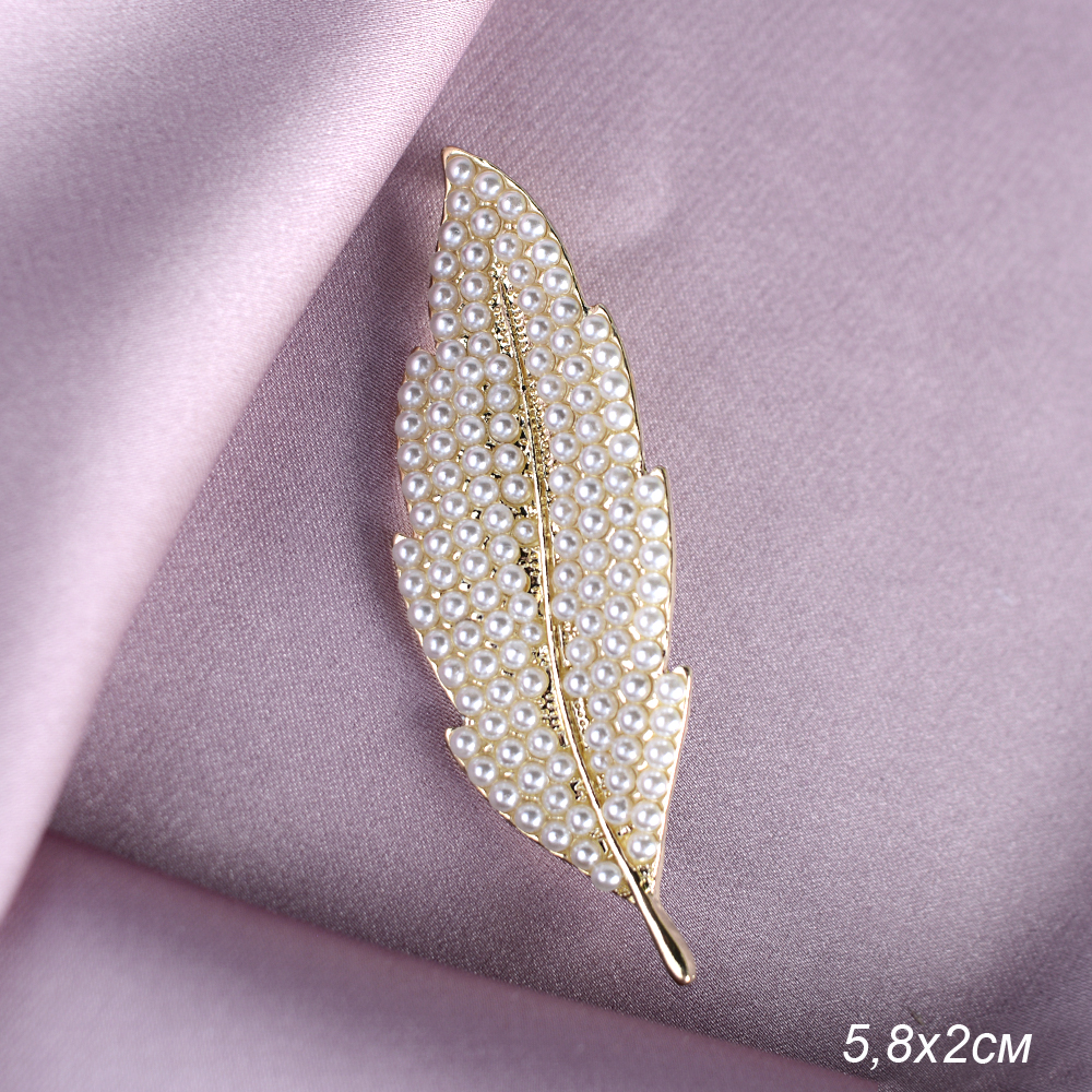 Брошь Перо 5,8 см / GM273-55 /уп 12/ с жемчугом