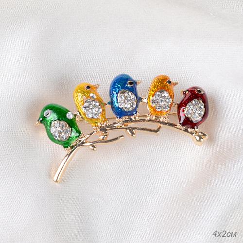 Брошь Птички на ветке 4 см / GM293 /уп 12/