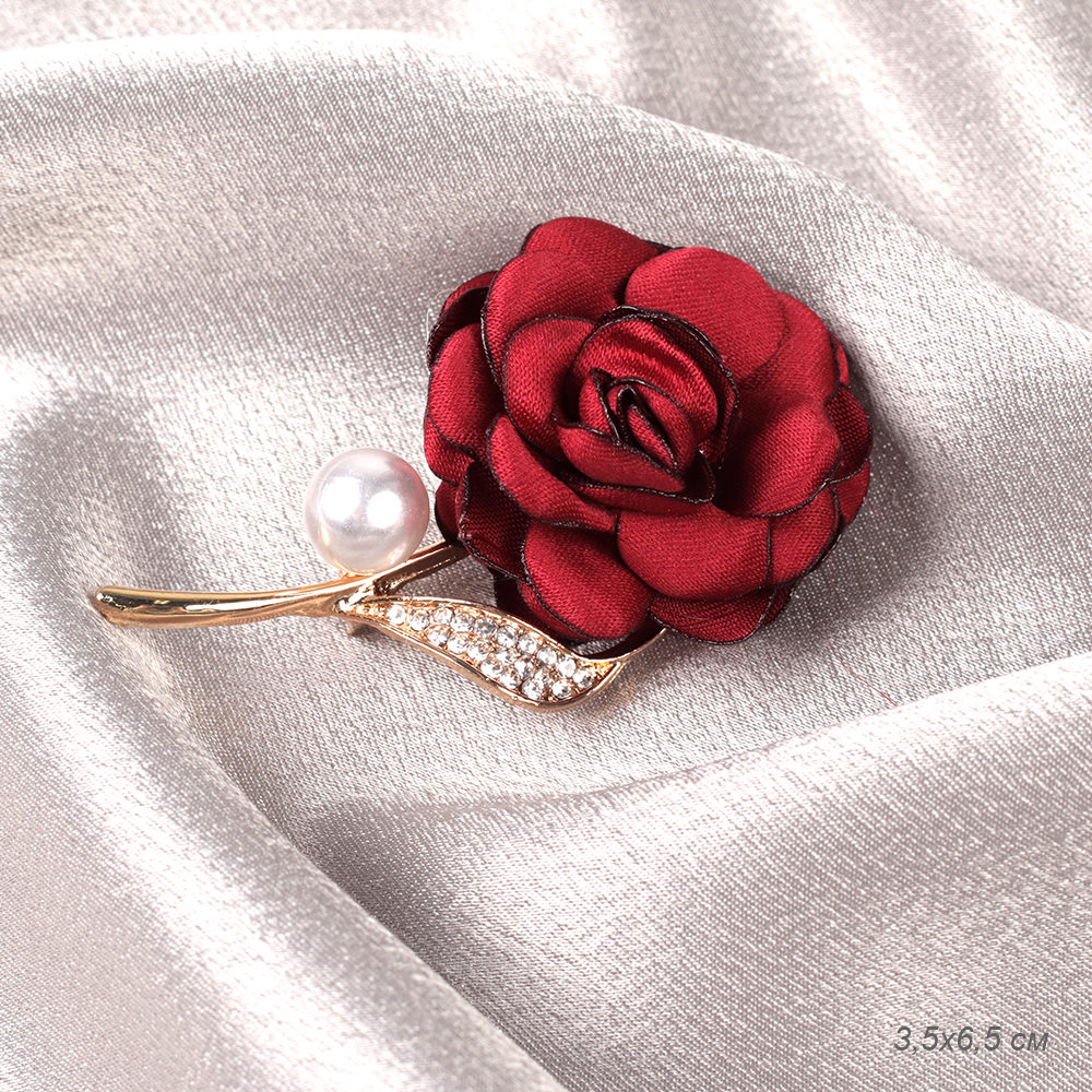 Брошь Роза 6,5 см / 3232 /уп 36/ с жемчугом/