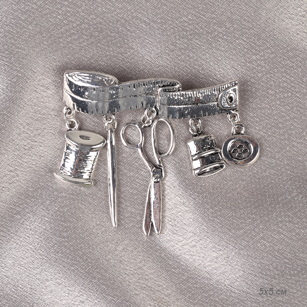 Брошь Рукодельница 5 элементов 5 см / GM350 /уп 24/ серебро