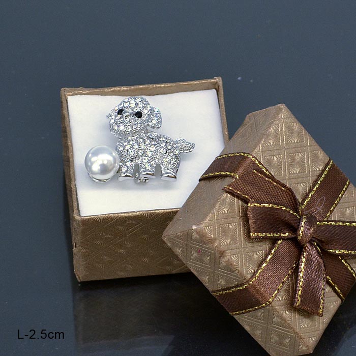 Брошь Собачка с жемчугом / 88-14 /уп 12/серебро АКЦИЯ