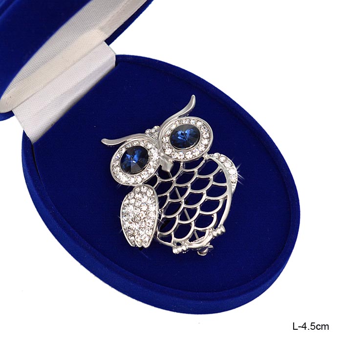 Брошь Сова 4,5 см / 2115-24 /уп 12/240/ серебро