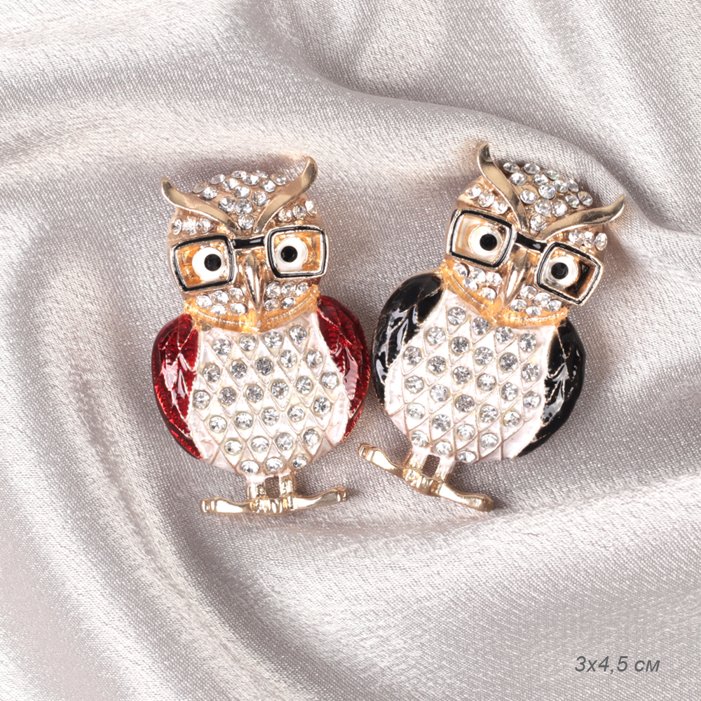 Брошь Сова в очках 4,5 см / 3300 /уп 12/