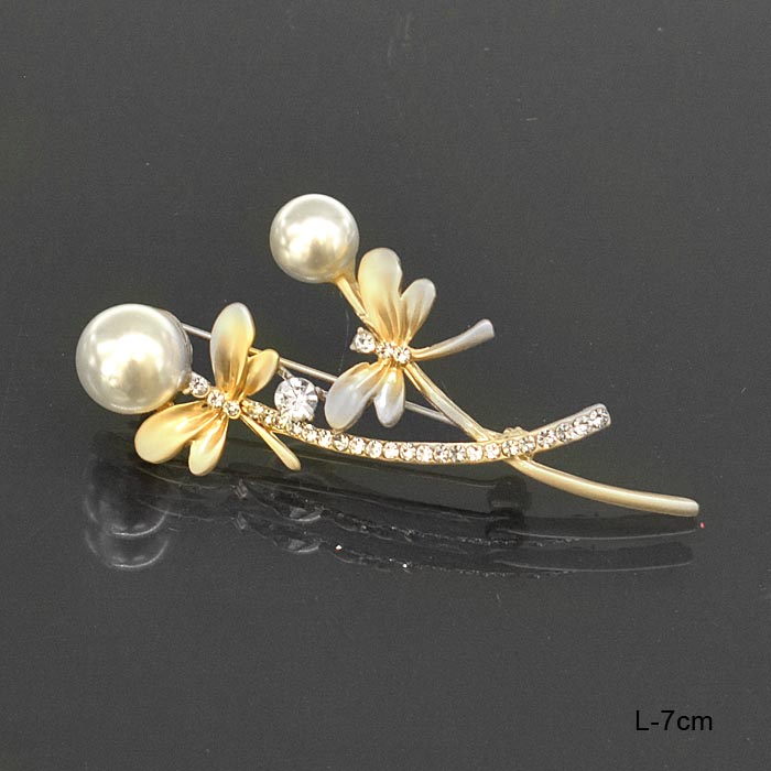 Брошь Стрекозы 7 см / 59-9 /уп 12/ с жемчугом/ золото