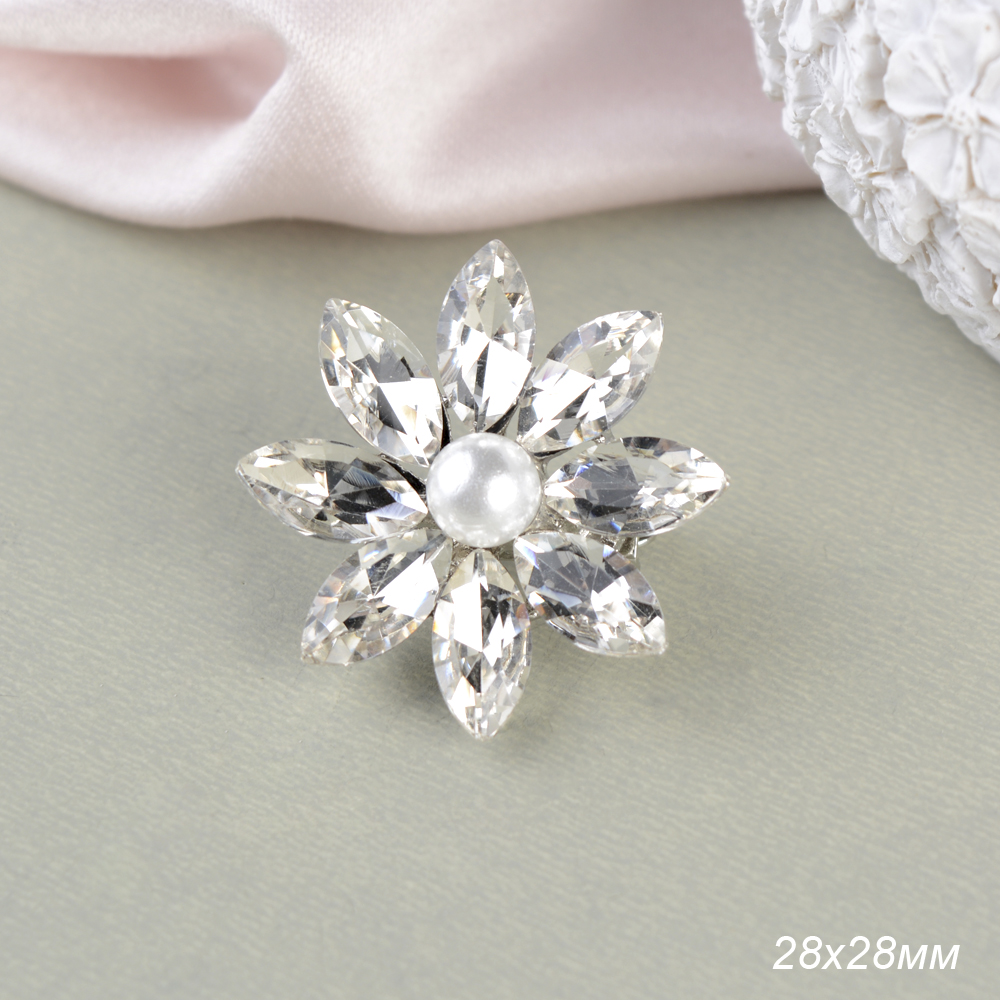 Брошь Цветок 2,8 см / GT4359-17 / с жемчугом