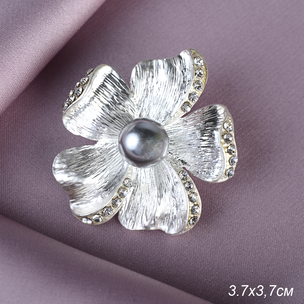 Брошь Цветок 3,7 см / GM273-54 /уп 12/ с жемчугом