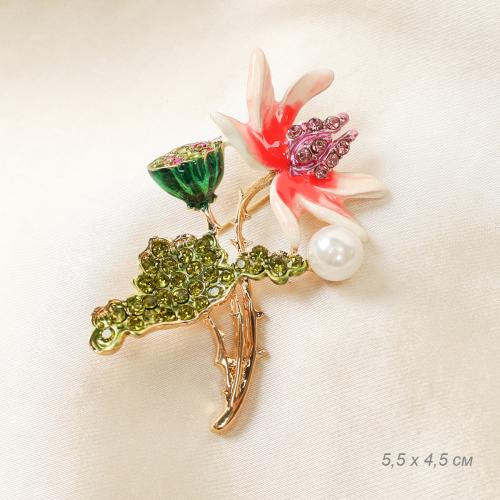 Брошь Цветок 5,5 см / YINI-34 /уп 12/ с жемчугом