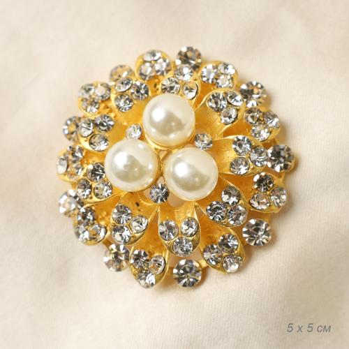 Брошь Цветок 5 см / LT14-2 /уп 24/ с жемчугом