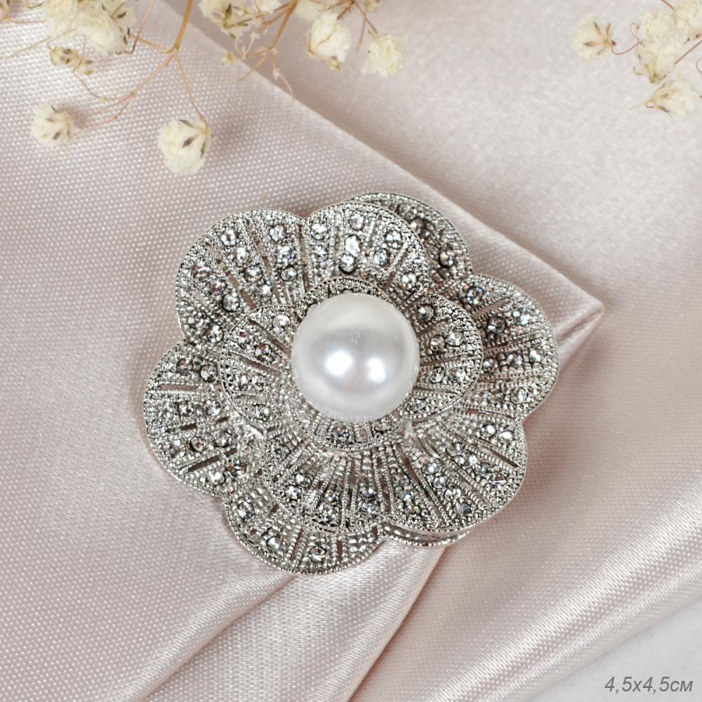 Брошь Цветок / LH2901-23 /уп 12/с жемчугом/серебро