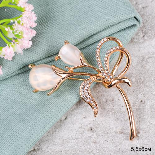 Брошь Цветы 6 см / GM340 /уп 24/ с перламутровыми камнями