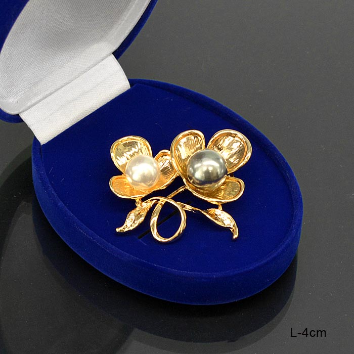 Брошь Цветы с жемчугом / 88-40 /уп 12/золото
