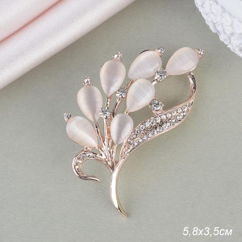 Брошь Веточка 5,8 см / GM273-56 /уп 12/ с перламутровыми камнями
