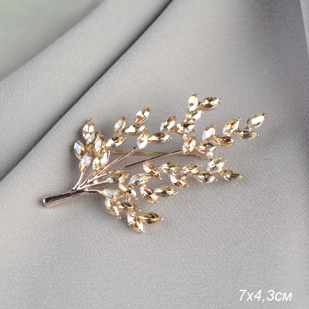 Брошь Веточка с листьями 7 см / GM273-42 /уп 12/ золото