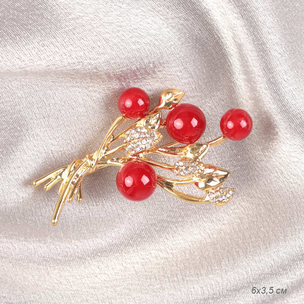 Брошь Веточка с ягодами 6 см / GM354 /уп 12/