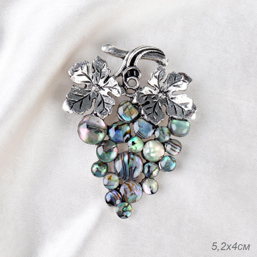 Брошь Виноград 5,2 см / GM300 /уп 12/ серебро