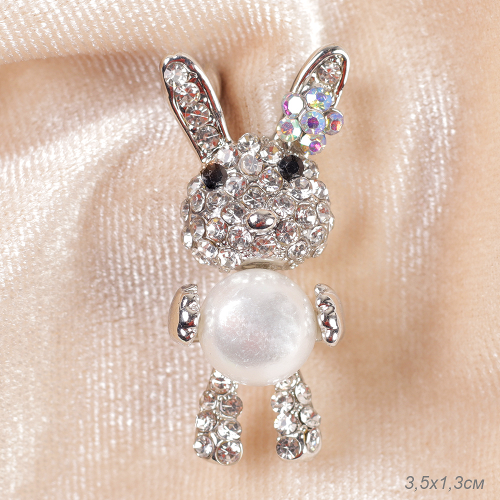 Брошь Зайка 3,5 см / GM278 /уп 12/ с жемчугом/ серебро
