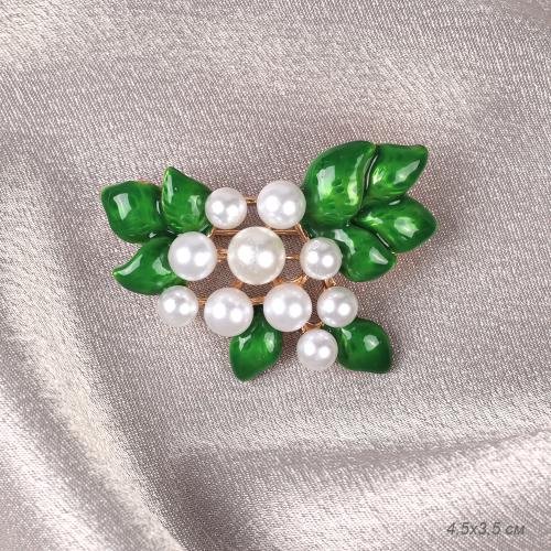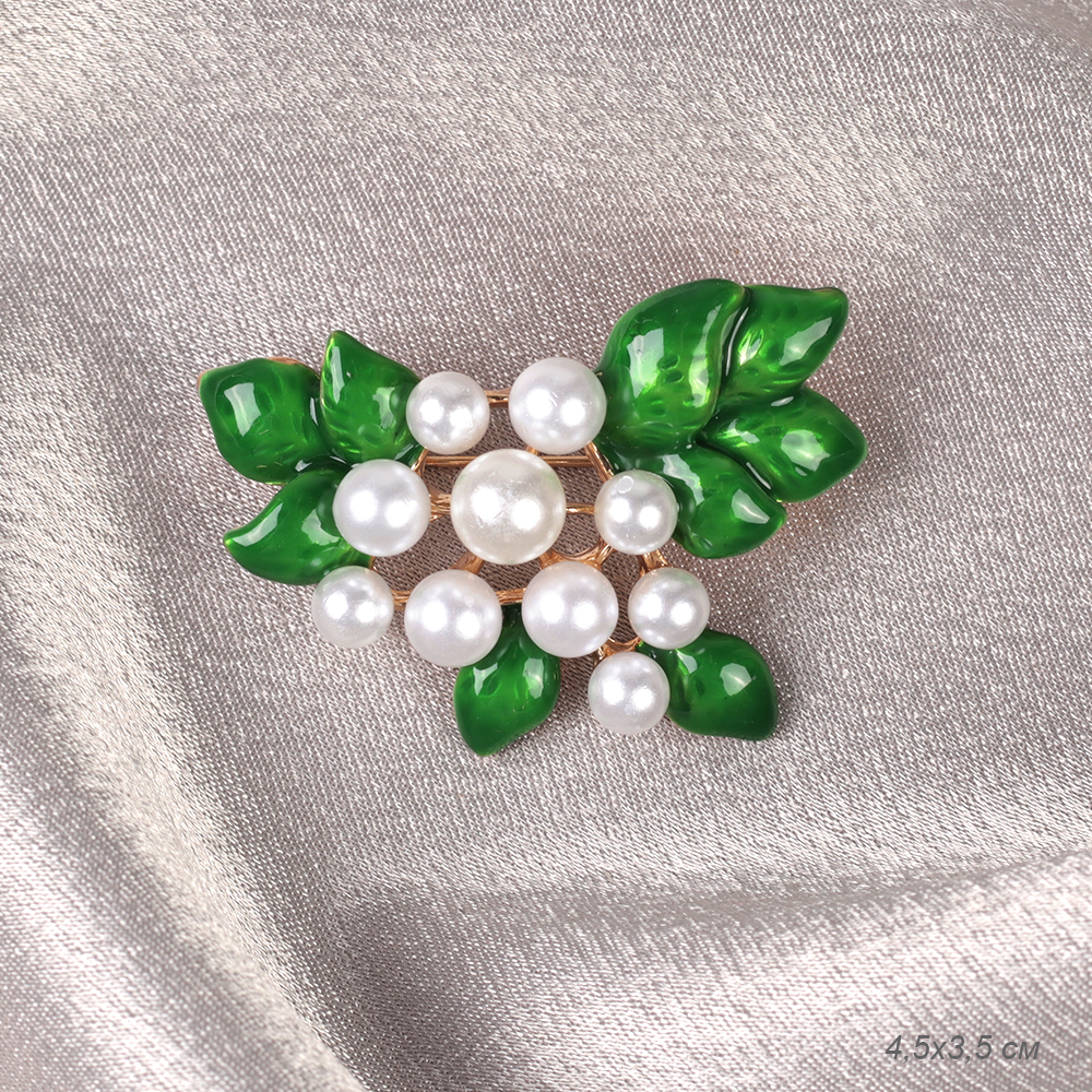 Брошь Жемчуг с листьями 4,5 см / 3216 /уп 12/