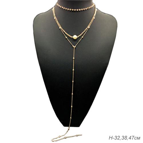 Колье-галстук многослойное 32-38-47 см / P-157G /уп 36/золото