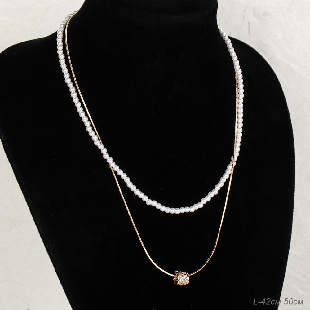 Колье многослойное / KK223-4 /уп 24/золото/жемчуг