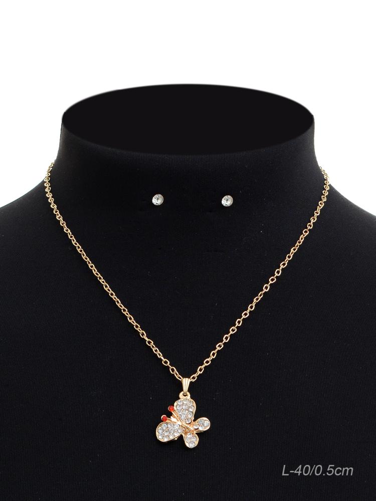 Подвеска на цепочке 40 см и серьги гвоздики / NA20-95 /уп 12/бабочка