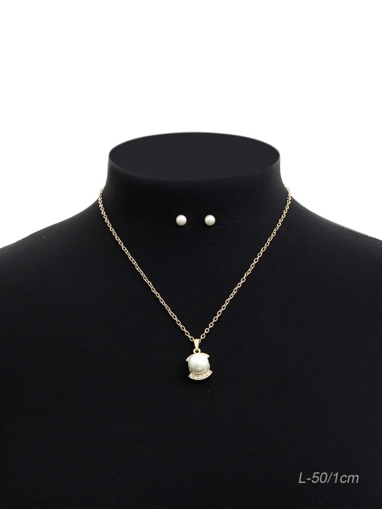 Подвеска на цепочке 50 см и серьги гвоздики / 700-5 /уп 12/жемчуг
