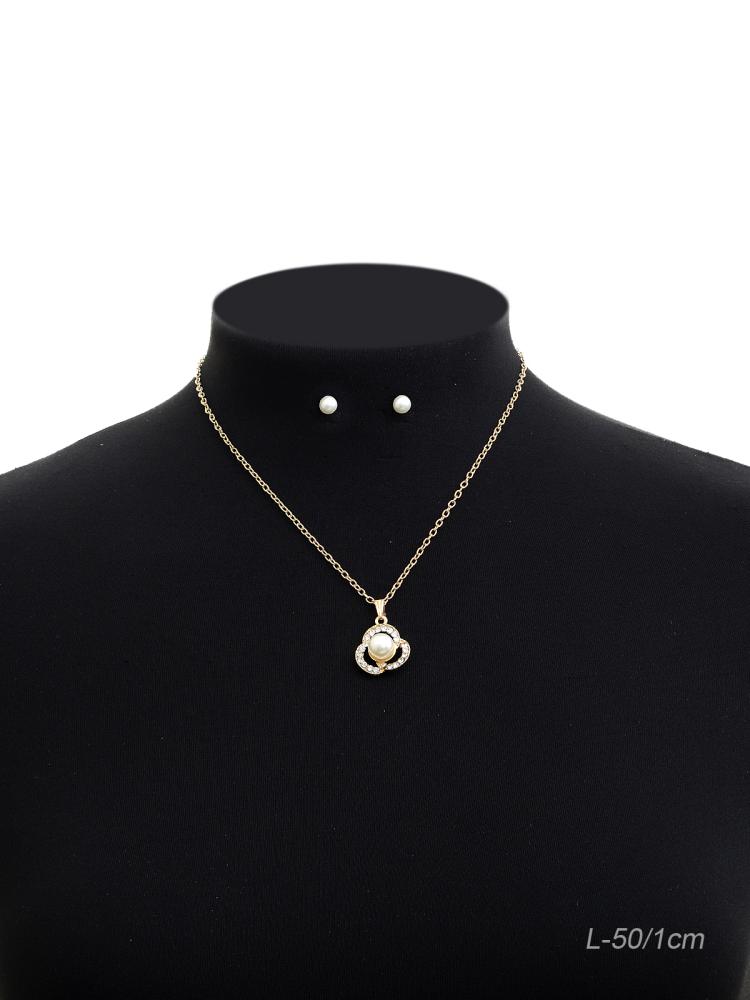 Подвеска на цепочке 50 см и серьги гвоздики / 700-6 /уп 12/жемчуг