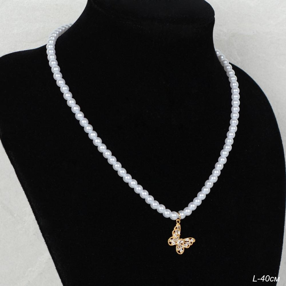 Подвеска-кулон на бусах Бабочка / KK223-2 /уп 24/жемчуг