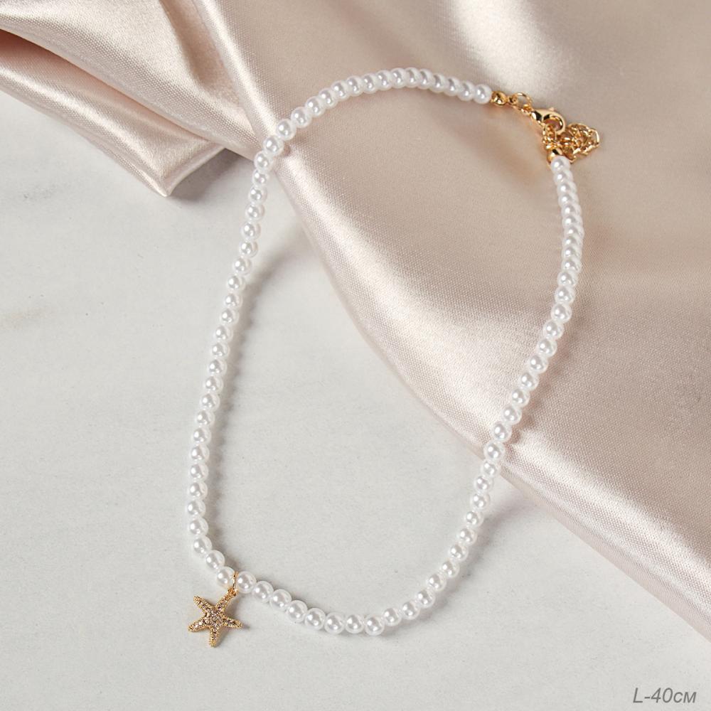 Подвеска-кулон на бусах Морская звезда / KK223-3 /уп 24/жемчуг